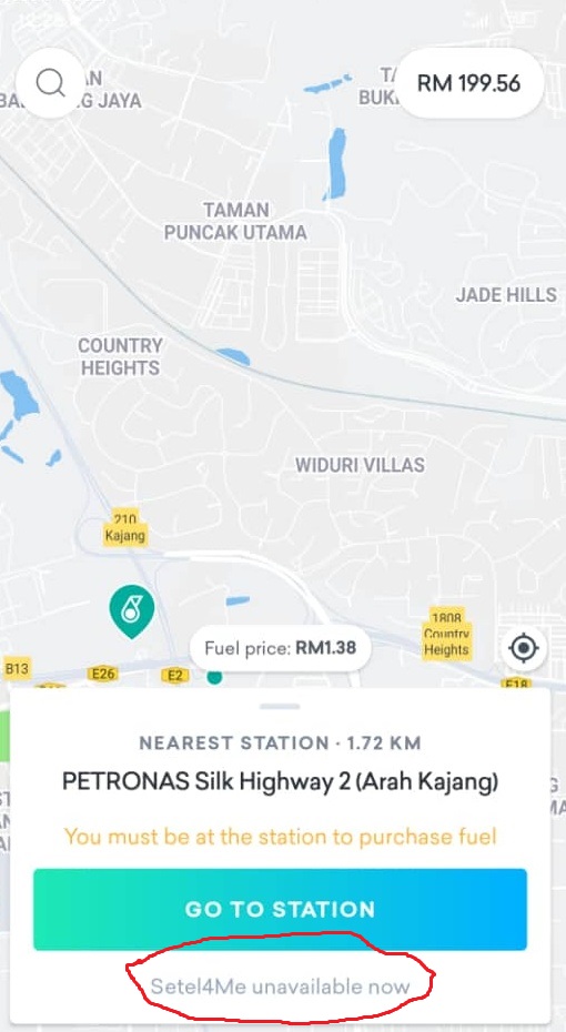 If the station does not have Setel, the app will show something like this (Note: Setel is not yet available at Teluk Cempedak, Kuantan :)) ) :